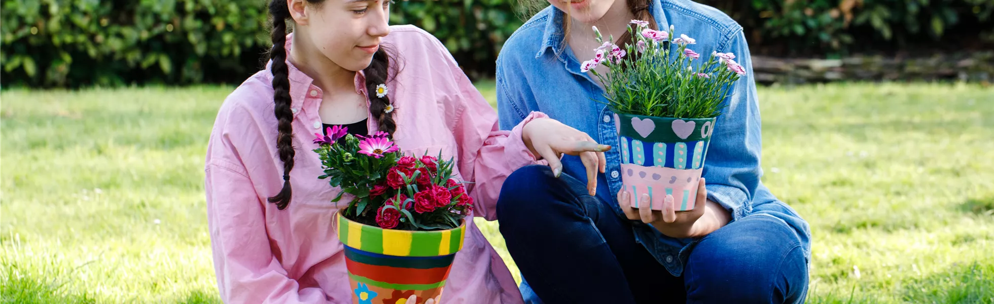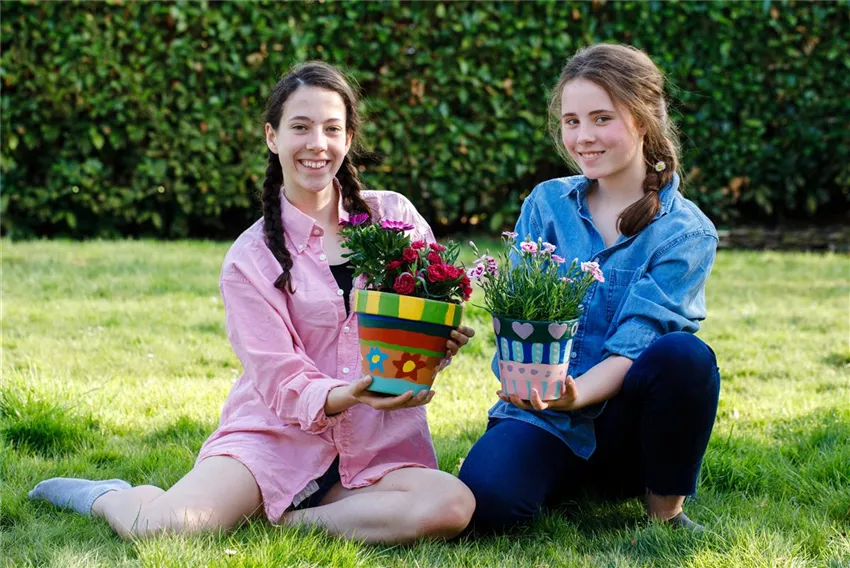 Jetzt könnt ihr eure Blumentöpfe mit allen möglichen Mustern, Formen und Farben bemalen. Hierbei gibt es keine Regeln. Ihr dürft alles ausprobieren, wonach euch der Sinn steht.