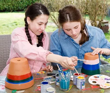Alte Blumentöpfe sind oft langweilig aber mit etwas Farbe wird euer Blumentopf zu etwas ganz besonderem und ein echter Hingucker. Je bunter desto besser.