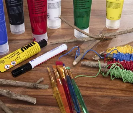 Lasst die Äste erst gut durchtrocknen, bevor ihr mit dem Basteln beginnt. Am besten breitet ihr das Material dazu auf einem Karton oder auf mehreren Lagen Zeitungspapier aus. Wenn die Äste trocken sind, kanns los gehen!