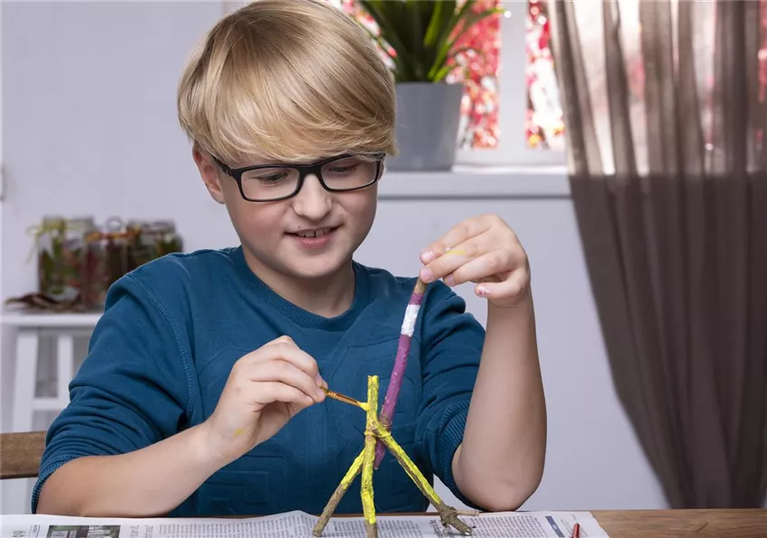 Schneidet die Äste so zurecht, dass sie stehen können. Lasst euch dabei am besten von einem Erwachsenen helfen, weil die Gartenschere sehr scharf ist.