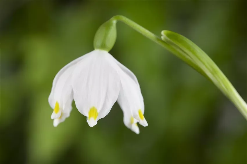 Die Frühlings-Knotenblume bildet pro Stiel nur ein bis zwei Blüten aus. Die kleinen weißen Blüten sehen aus wie kleine Glöckchen und haben, wenn ihr genau hinseht, grüne Punkte an den Spitzen. Die Blütezeit der Frühlings-Knotenblume geht von Februar bis April.