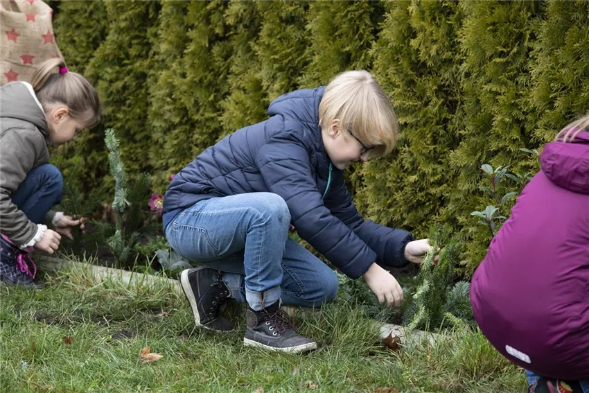 Wenn wir im Winter nach draußen in den Garten gehen, ziehen wir uns eine dicke Jacke, warme Socken und Schal und Mütze an. Nicht nur frieren im Winter, auch die Pflanzen in unserem Garten brauchen, wenn es kalt ist, besonderen Schutz. Und da kann euer zusammen gehaktes Laub zum Einsatz kommen. Das könnt ihr nämlich um die Pflanzen im Beet legen und die empfindlichen Wurzeln so vor Bodenfrost schützen. Wenn ihr kein Laub mehr im Garten habt, könnt ihr auch Tannenzweige zum Abdecken nehmen.