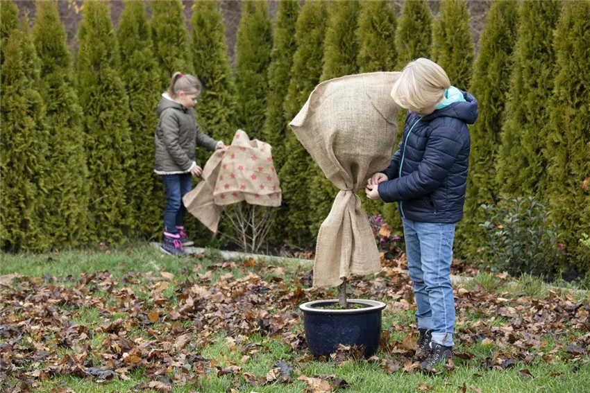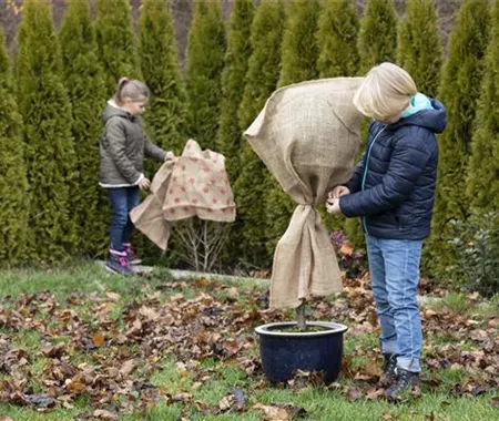 Einige Pflanzen in eurem Garten brauchen im Winter eine spezielle Behandlung. Oft reicht nämlich das Abdecken der Wurzeln mit Laub oder Tannenzweigen nicht aus. Oleander zum Beispiel liebt warme Temperaturen. Wenn ihr ihm nicht im Kübel im Garten stehen habt, sollte er im Winter unbedingt einen Mantel bekommen. Entweder nehmt ihr spezielle Abdeckungen für Pflanzen aus dem Handel, oder ihr nehmt einfach Jutesäcke. Die eignen sich auch super, um den Pflanzen in eurem Garten zu helfen, gut durch den Winter zu kommen. Pflanzen, die ihr im Kübel auf der Terrasse stehen habt, können in der Garage oder im Haus überwintert werden.