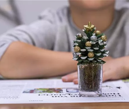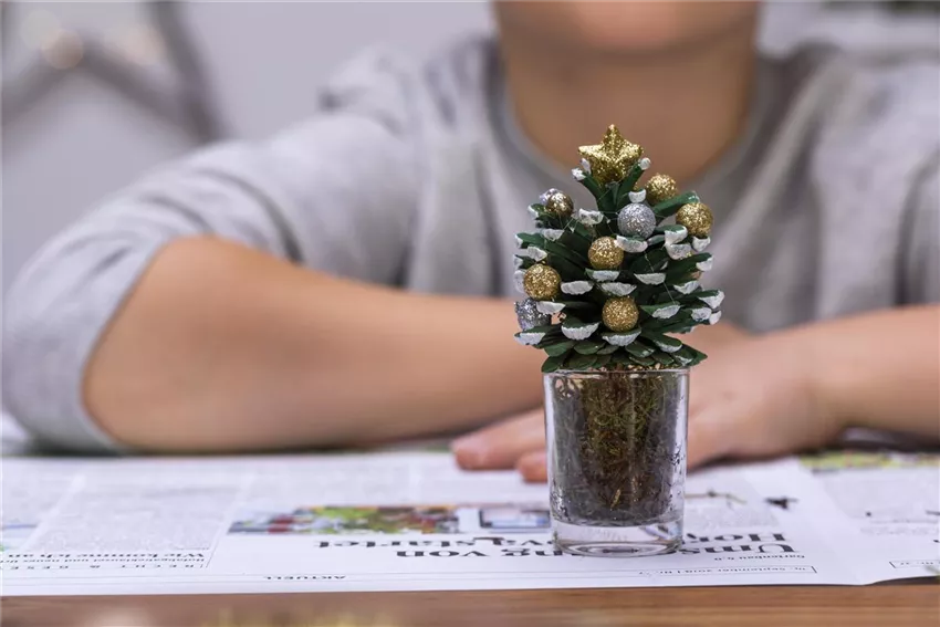Zum Schluss könnt ihr Moos in kleine Windlichtgläser stopfen und den Tannenzapfen darauf stellen. So sieht es aus, als würde er im Wald stehen. Ein kleiner Tipp: bei den grünen Tannenzapfen könnt ihr die Zapfenenden noch weiß anmalen. Dann sieht’s so aus, als hätte es über euren Zapfenbaum geschneit.