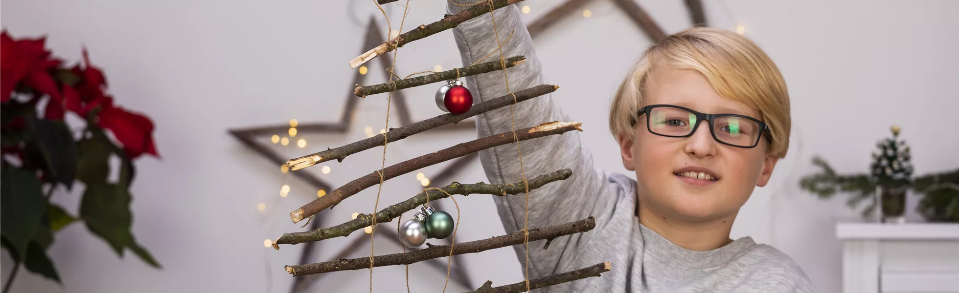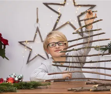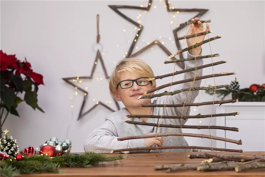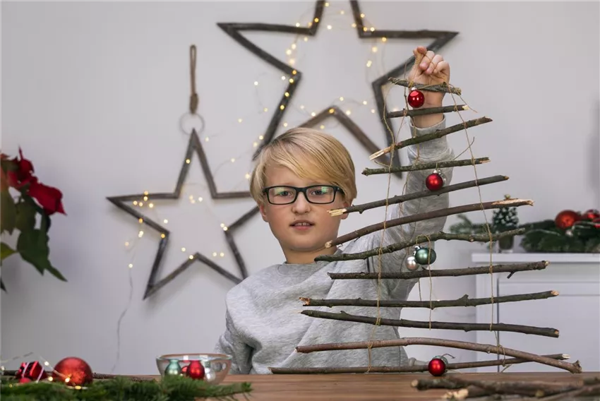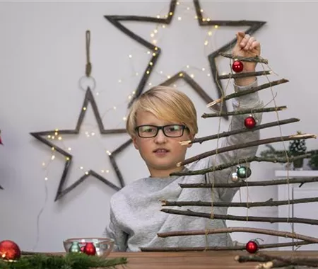 Weihnachtsbäume sind toll. Es muss aber nicht immer eine Tanne sein. Bastelt euch aus Stöckern doch einfach euren eigenen Weihnachtsbaum für euer Kinderzimmer.