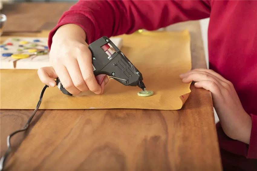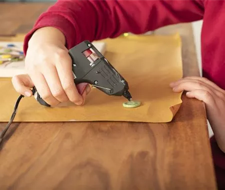 Wenn ihr Heißkleber benutzen wollt, solltet ihr euch von einem Erwachsenen helfen lassen. Der Kleber wird nämlich wirklich heiß und ihr sollt euch ja nicht verbrennen.