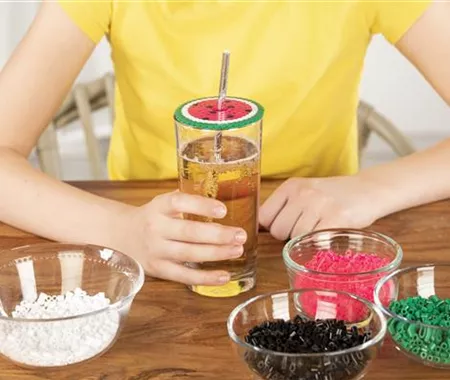 Seid ihr im Sommer auch genervt von den ganzen Insekten, die euch eure leckere Limo wegnaschen wollen? Dann könnt ihr euch mit Bügelperlen super schnell eine coole Abdeckung basteln, mit der die kleinen Diebe nicht an euer Getränk kommen.