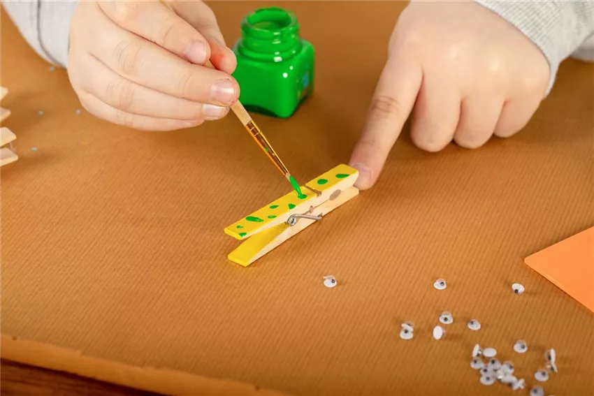 Sucht euch am besten eine Möglichkeit, an der ihr eure Wäscheklammern nach dem Anmalen festklemmen könnt, damit sie gut trocknen können. Dann könnt ihr starten!