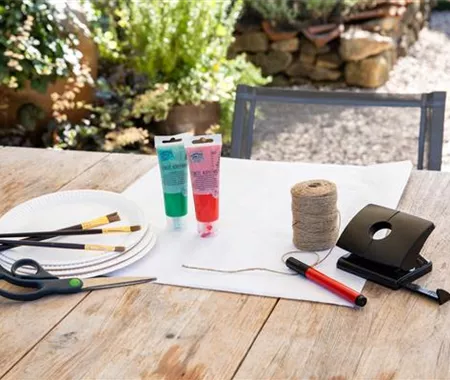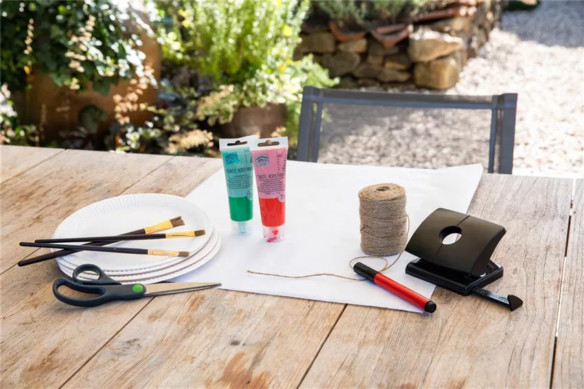 Legt euch beim Basteln am besten Papier als Unterlage auf den Tisch. So malt ihr den Tisch nicht an und Mama und Papa werden nicht böse. Dann kann's auch schon los gehen.
