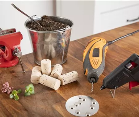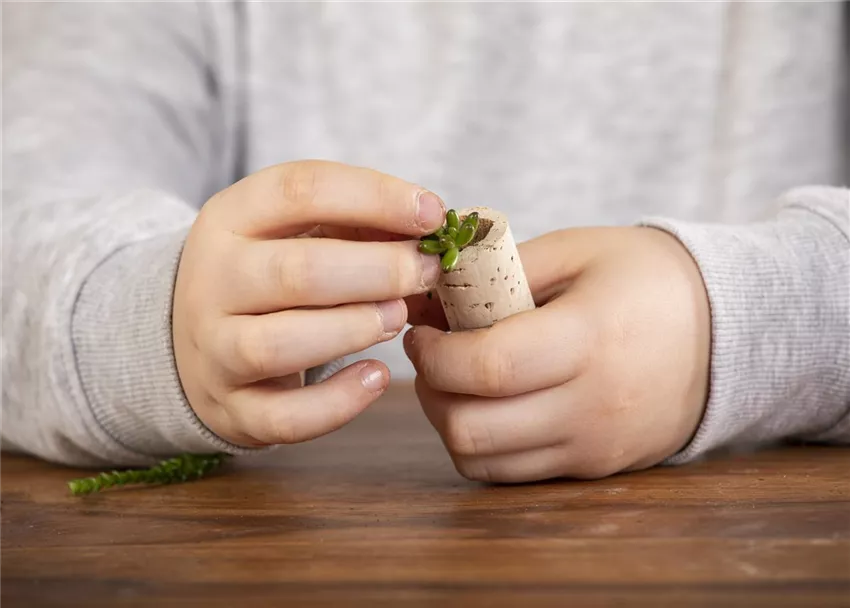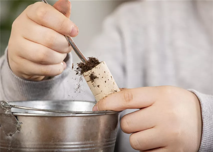 Damit die kleinen Sukkulenten im Korken auch gut wachsen können, müssen die Korken erstmal ausgehöhlt werden. Zeigt euren Eltern wie das geht, die machen das dann für euch.