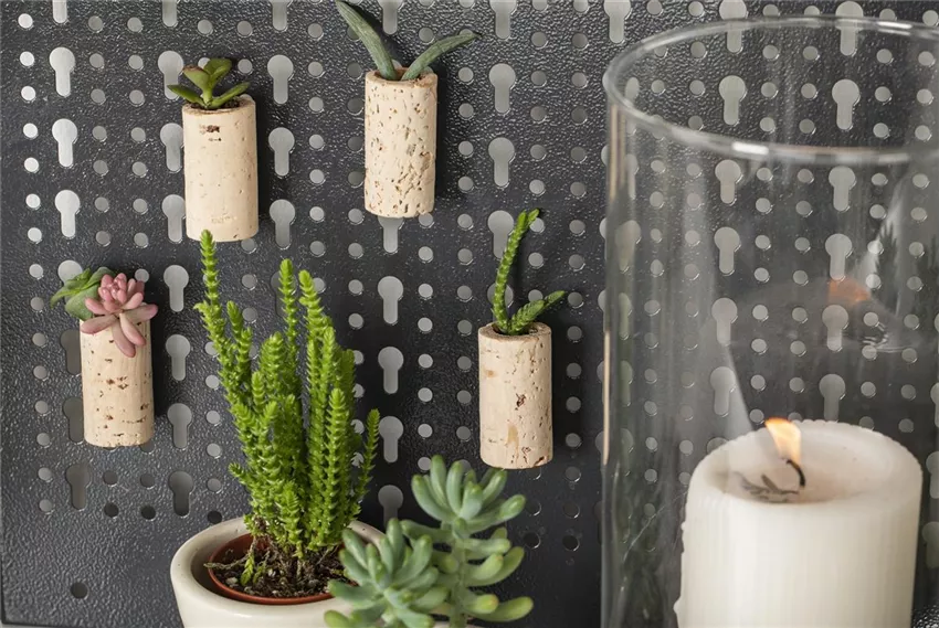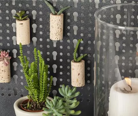 Der hängende Minigarten – Sukkulenten-Korken-Magnete