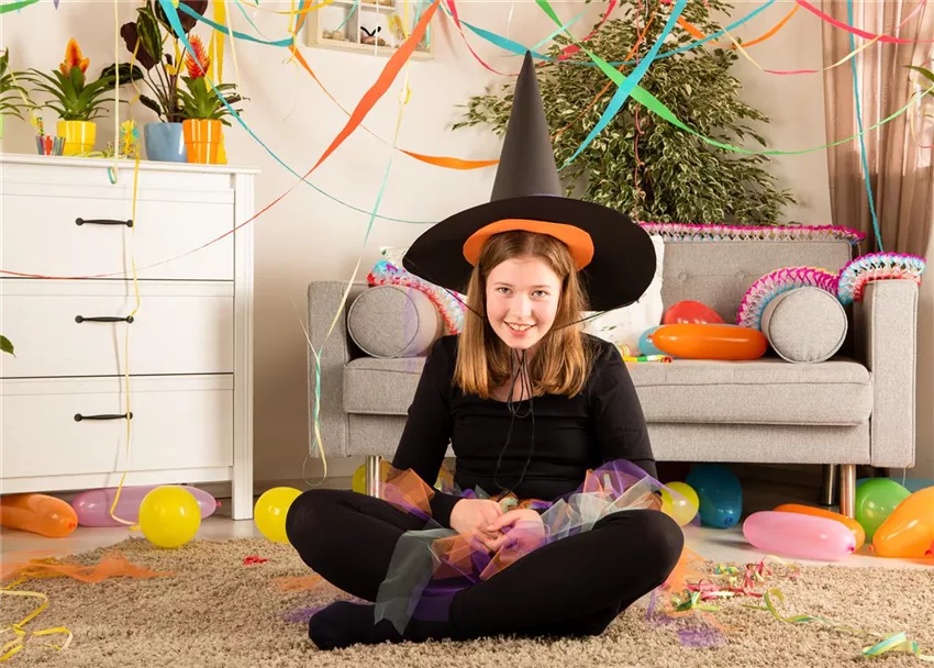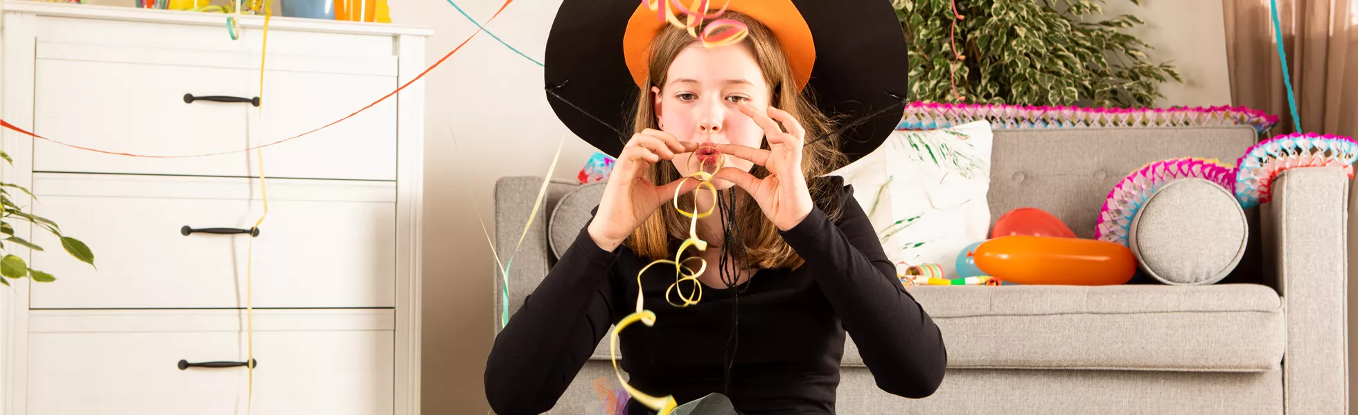 Dann ist euer Kostüm eigentlich auch schon fertig. Zieht euch die schwarze Leggings und das Langarmshirt über, zieht den Rock drüber und setzt den Hut auf. Kleiner Tipp: mit einer bunt gestreiften Strumpfhose, die zu eurem Rock passt, sieht das Kostüm noch ein bisschen schöner aus.