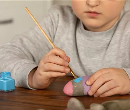 Die Steine sollten vorher gründlich gewaschen und komplett abgetrocknet sein, sonst hält die Farbe nicht. Wenn ihr das erledigt habt, kann’s auch schon los gehen!