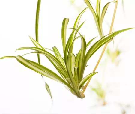 Als Hängepflanze eignet sich die Grünlilie besonders gut. Die Zimmerpflanze bildet lange Triebe, an denen etwas ganz Besonderes wächst. Die sogenannten Kindeln sind kleine Ableger der Pflanze, die an den Trieben wachsen und eigentlich fertige kleine Pflanzen sind. Wenn ihr sie lange genug an den Trieben lasst, bilden sie Wurzeln und ihr könnt diese dann einfach wieder einpflanzen. Damit breitet sich die Grünlilie in kürzester Zeit sehr schnell aus. Die Blätter der der Grünlilie können je nach Sorte bis zu 40 Zentimeter lang werden.