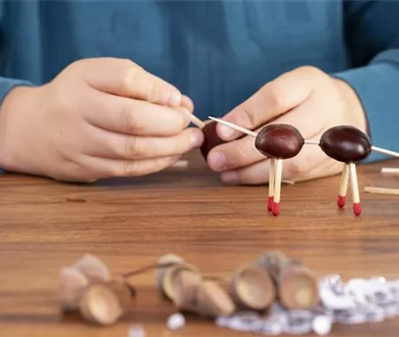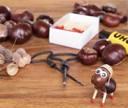 Überall liegen Kastanien und Eicheln und die sehen nicht nur toll aus, ihr könnt mit den kleinen Herbstfrüchten auch tolle Tierchen und Männchen basteln.