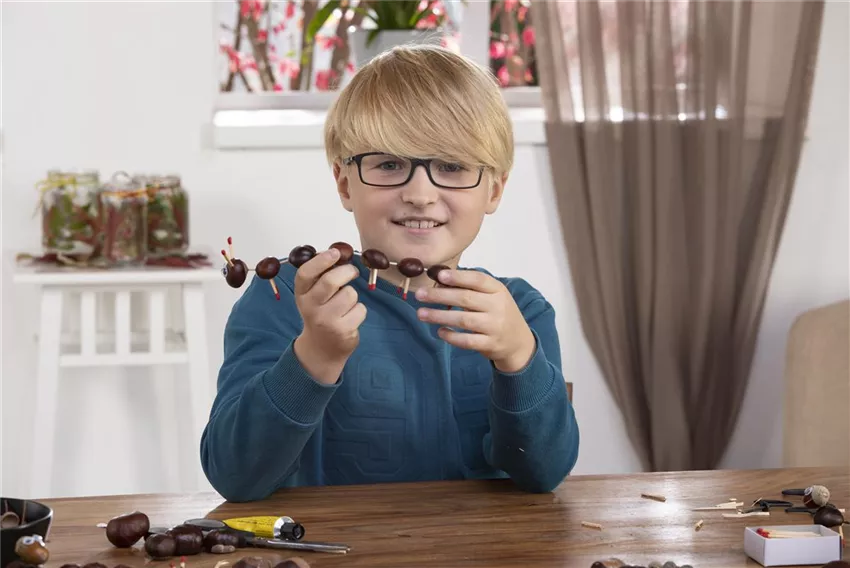 Jetzt könnt ihr alle Kastanien zusammen stecken. Steckt den Kopf auf den Körper und die einzelnen Kastanien in einer Reihe hintereinander. Das Ende des Tausendfüßlers ist sein Hinterteil. Jetzt könnt ihr auf den Kopf noch zwei Wackelaugen kleben. Fertig ist euer Kastanien-Tausendfüßler! Lasst eurer Fantasie freien Lauf, ihr könnt auch Schafe, Fledermäuse oder Federtiere basteln.
